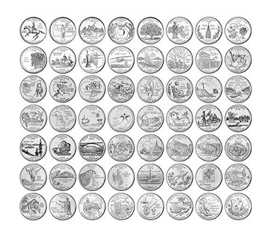 1999-2009 Cuarto de dólar 50 estado en capas de oro Set en Collectors Wood Box