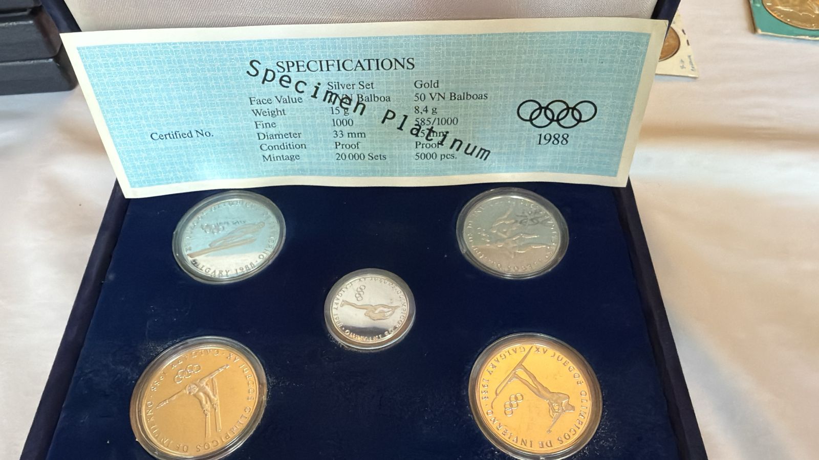 Ultra Raro set de Platino Monedas de Panamá 1988 con caja original.
